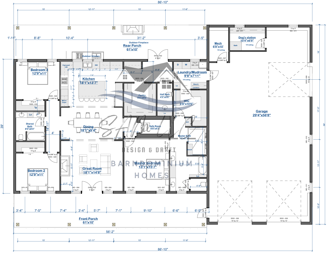 The Stonebrook Retreat Plan Living Area: 2,200 sqft Garage Area: 1,862 sqft Porch Area: 1,114 sqft Bedrooms: 3 Bathrooms: 2.5 The Stonebrook Retreat Plan combines spacious interiors with abundant outdoor living. With 3 bedrooms, 2.5 baths, and over 1,100 sqft of porch space, this design is ideal for those who enjoy a balance of comfort and relaxation. The large garage provides both convenience and versatility, making this plan perfect for modern family living. For modifications, custom plans, material kit, or installation services please email me directly at samdrafters@gmail.com